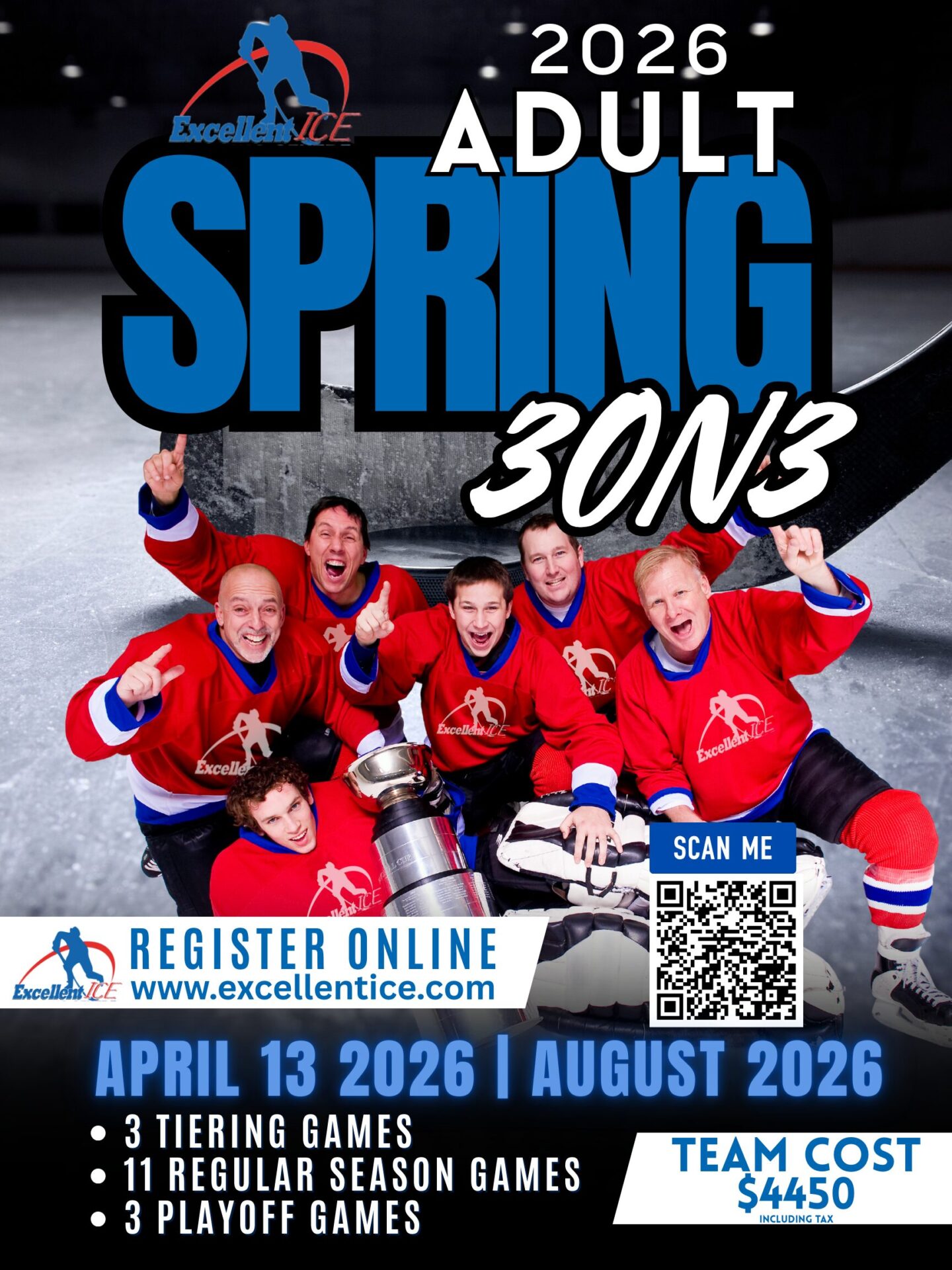 The Adult 3-on-3 League is a dynamic and competitive hockey program designed for adult players seeking high-intensity action and team camaraderie. Hosted at Excellent Ice in Surrey, BC, the league offers a structured format with tiering, regular season, and playoff matchups, all played in a fast-paced 3-on-3 style. With taxes included in the registration fee and a flexible payment plan available, it’s an accessible option for teams looking to stay sharp for the season! Register by calling or using the button below.