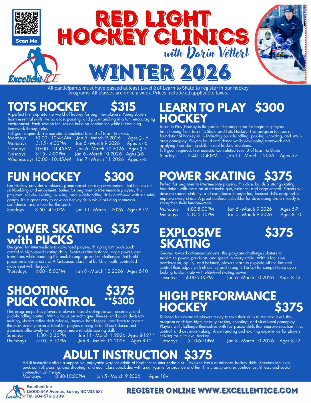 Explore our schedule below to find the perfect class to elevate you or your child’s hockey performance this season and beyond!