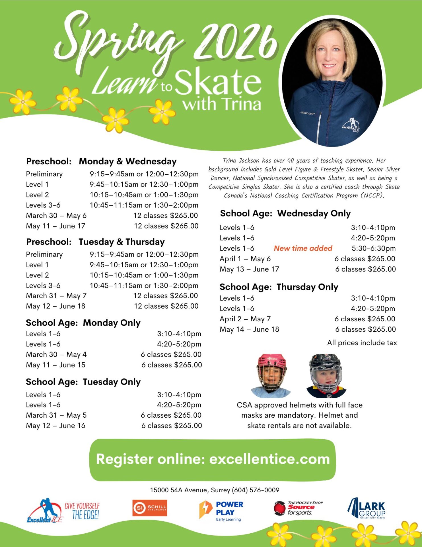 ›School Age Learn to Skate Sessions Schedule (Mar - Jun)